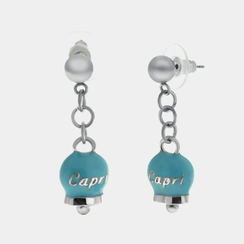 Orecchini in Acciaio con campanella turchese e scritta Capri