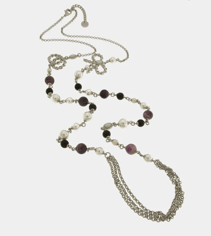 Collana in Metallo con perle bianche e nere  e multifilo