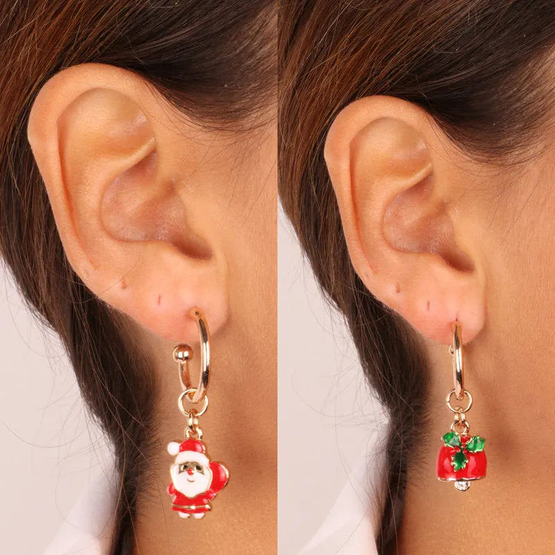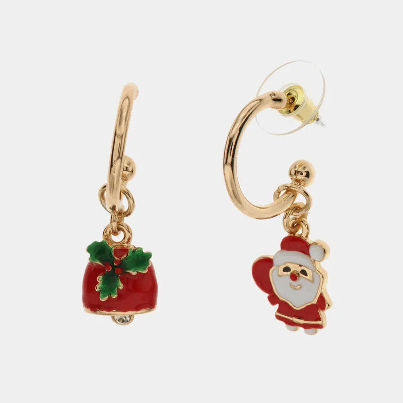 Orecchini in Metallo con babbo Natale e camapanella con agrifoglio