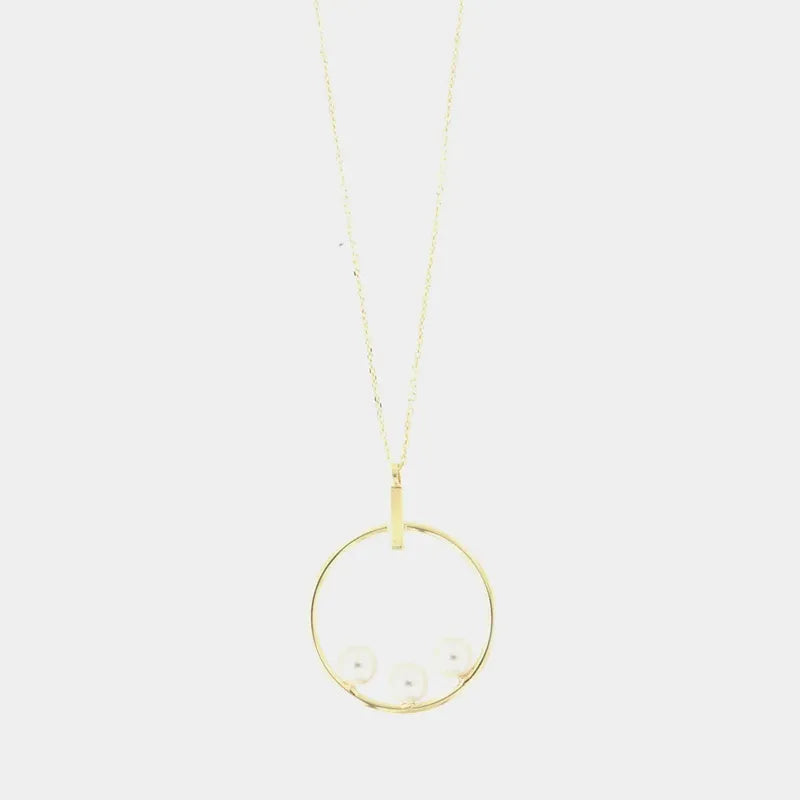 Collana in Argento 925 con cerchio pendente e trio di perla bianca