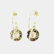 Orecchini in Argento 925  a cerchio con cristallo pendente su piastra martellata