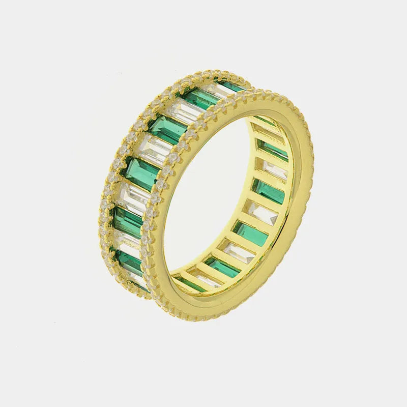 Anello in Argento 925 a fascia con zirconi bianchi e verdi