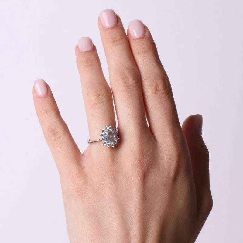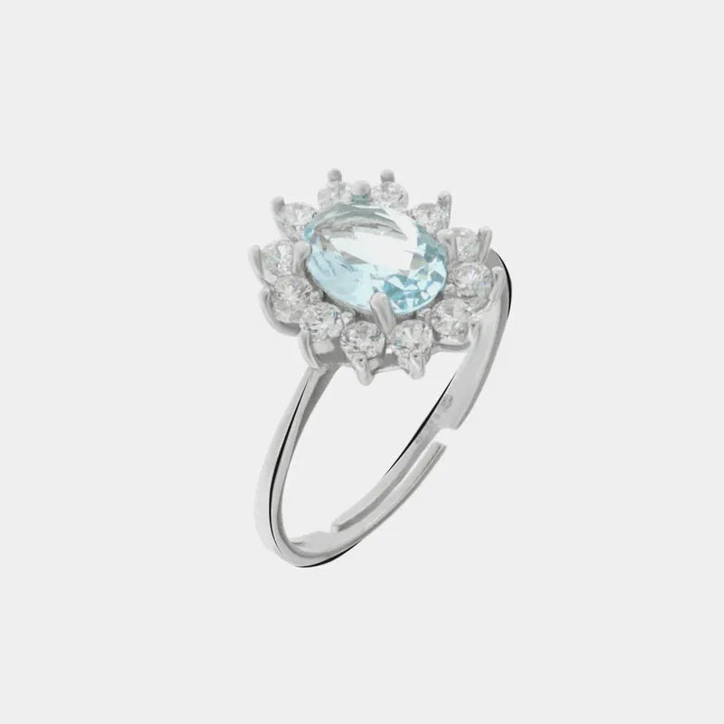 Anello in Argento 925 con zirconi bianchi e zircone centrale acqua