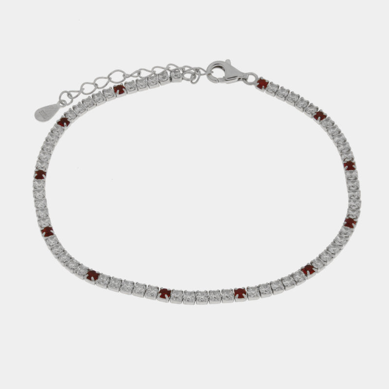 Bracciale in Argento 925 tennis con zirconi trasparenti e rossi