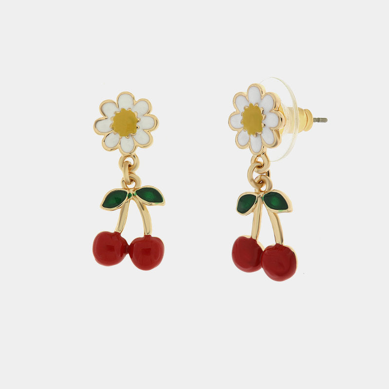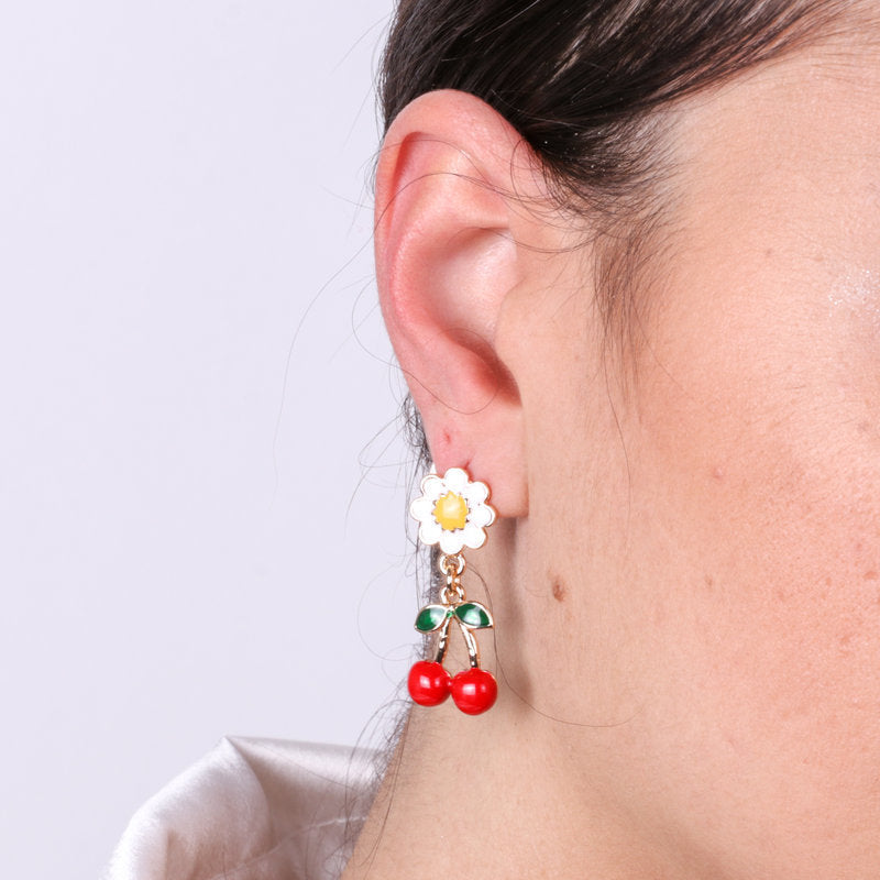 Orecchini in Metallo con margeherita al lobo e ciliegia pendente