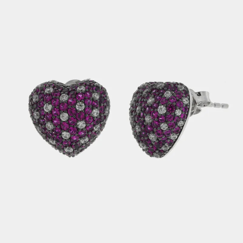 Orecchini in Argento 925 cuore bombato con pave' rossi