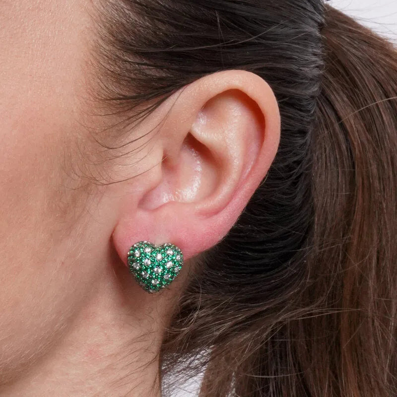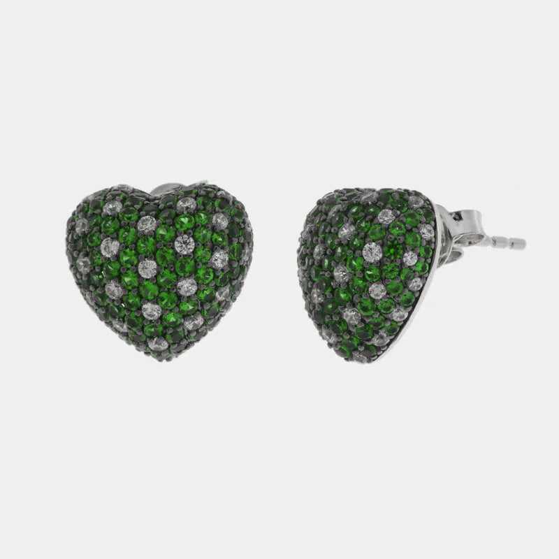 Orecchini in Argento 925 cuore bombato con pave' verdi