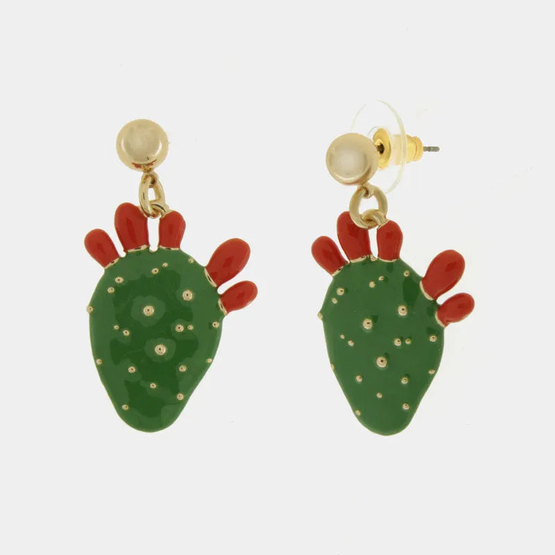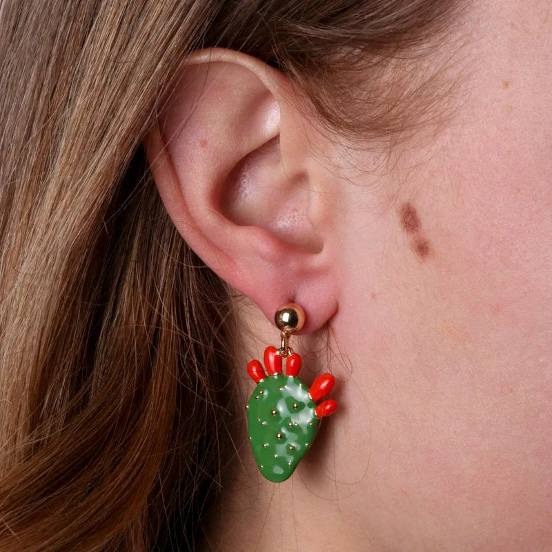 Orecchini in Metallo con fico d'india pendente, impreziosito da smalto verde e punte di smalto rosso