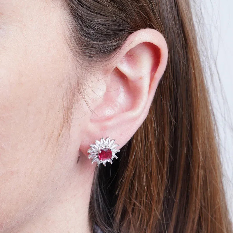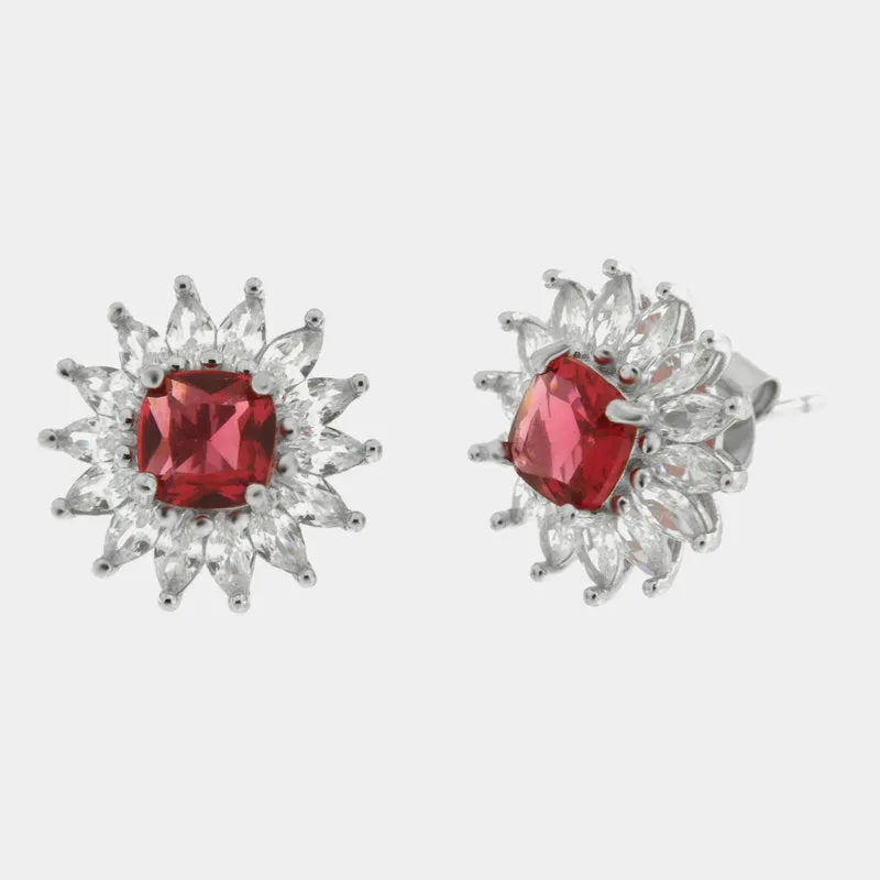 Orecchini in Argento 925 fiore con punto luce rosso