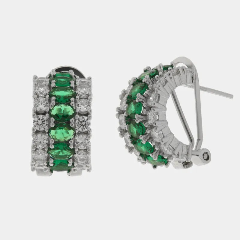 Orecchini in Argento 925 semicerchio con zirconi verdi