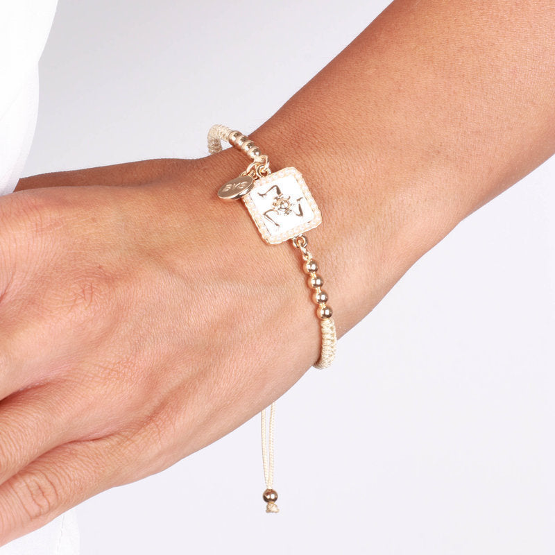 Bracciale in Metallo con trinacria e cordino bianco