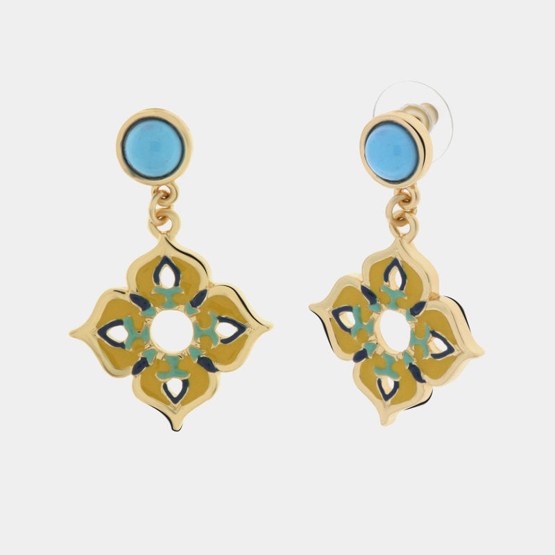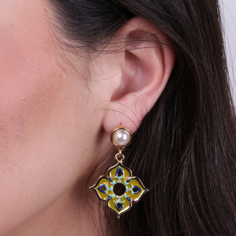 Orecchini in Metallo con croce pendente impreziosita da maioliche