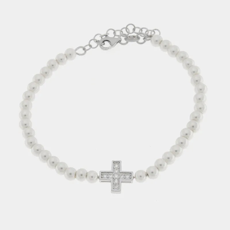 Bracciale in Argento 925 con perle di acqua dolce e croce centrale