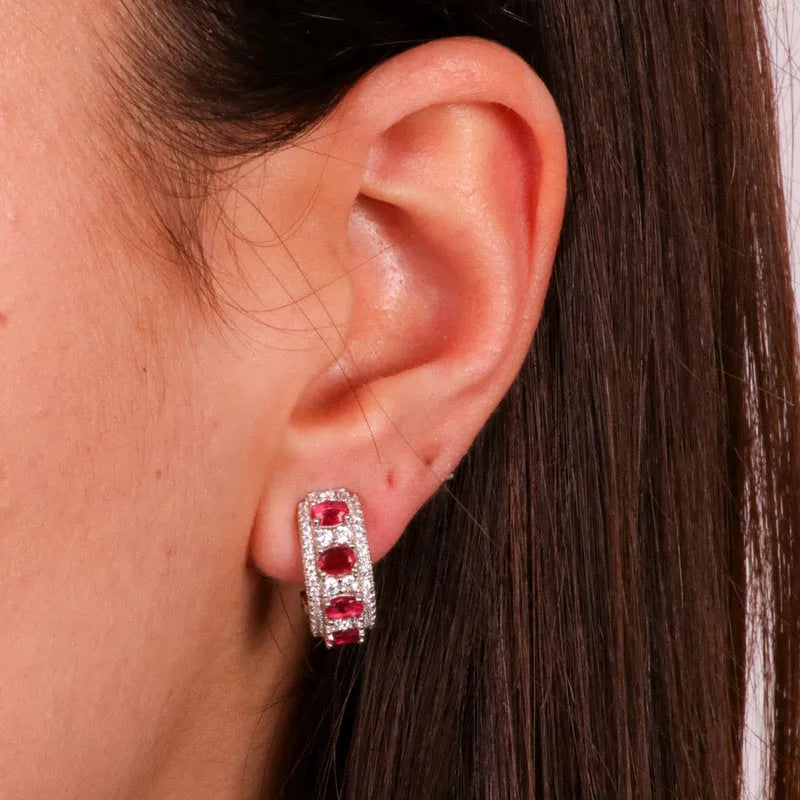 Orecchini in Argento 925 con zirconi rossi e bianchi