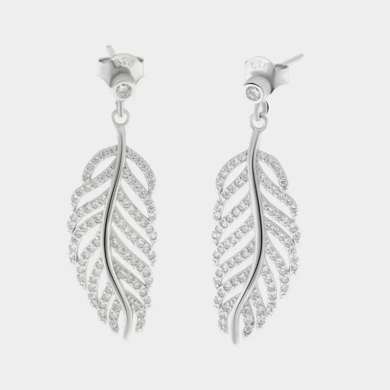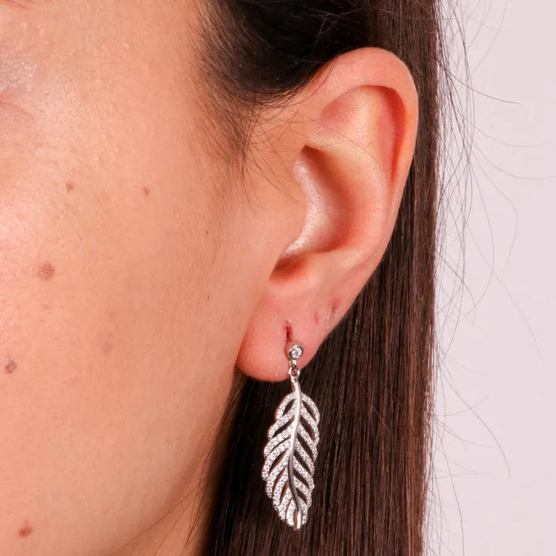 Orecchini in Argento 925 pendenti a forma di foglia con zirconi bianchi