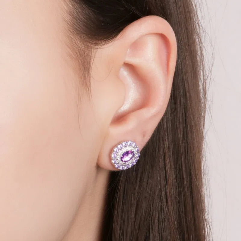 Orecchini in Argento 925 semicerchio con zirconi blu e bianchi