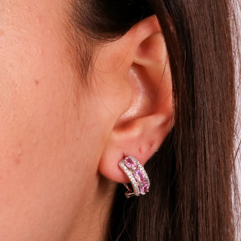 Orecchini in Argento 925 semicerchio con zirconi rosa