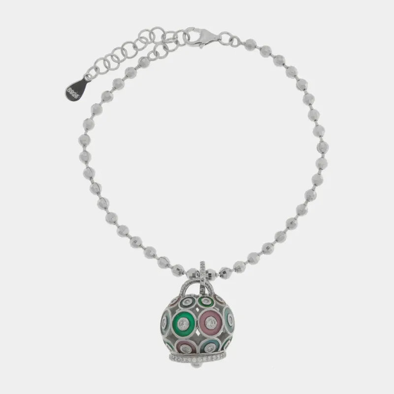 Bracciale in Argento 925 con campanella impreziosita da zirconi e smalti colorati