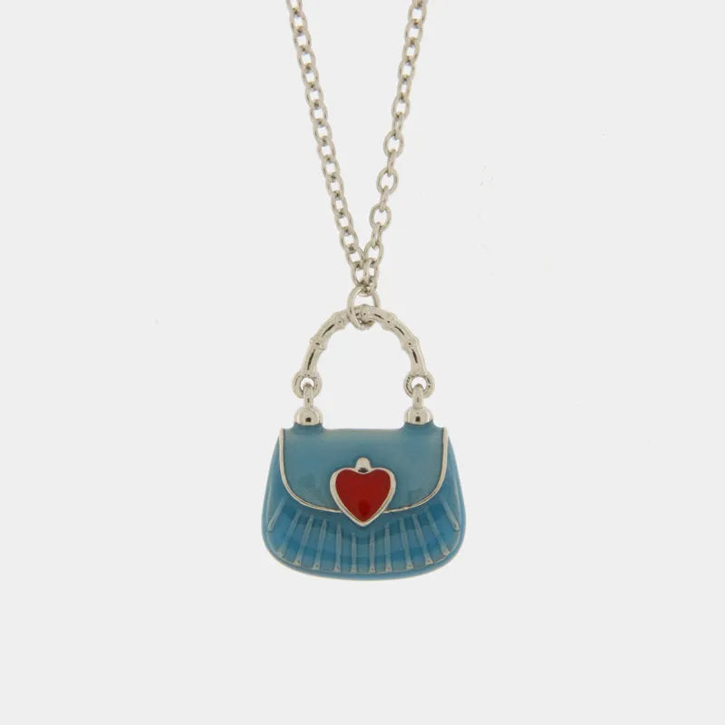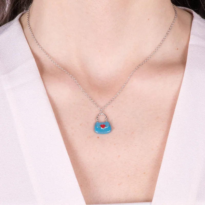 Collana in Argento 925 con borsetta azzurra