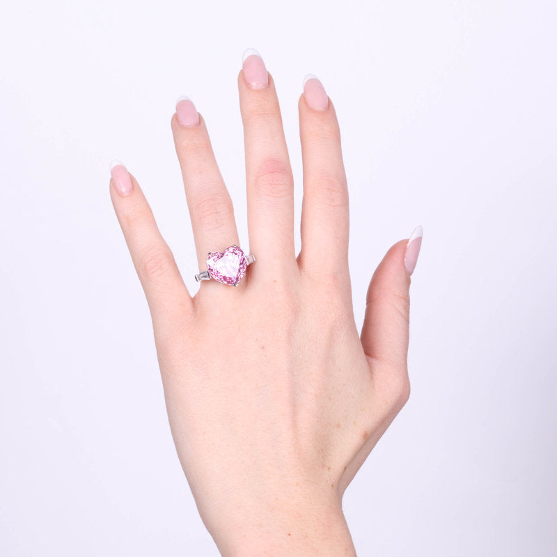 Anello in Argento 925 cuore rosa con zirconi trasparenti