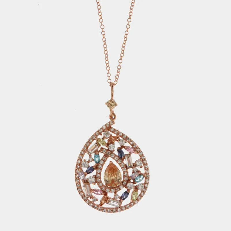 Collana in Argento 925 con ciondolo pendente impreziosito da zirconi multicolor