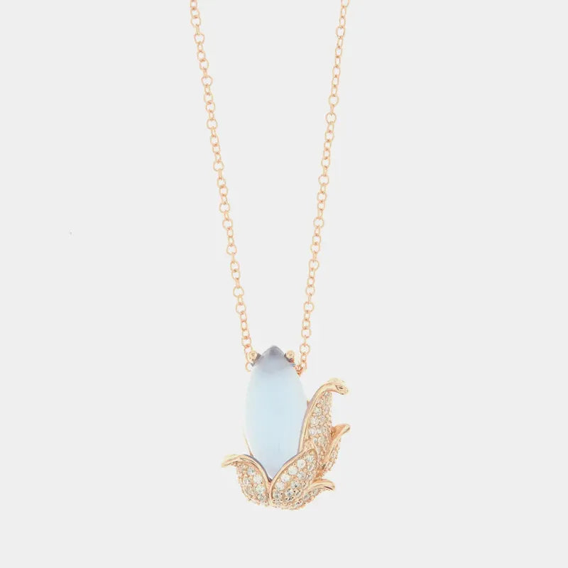 Collana in Argento 925 con pendente impreziosito da pietra effetto occhio di gatto