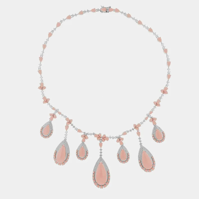 Collana in Argento 925 floreale con pendenti effetto corallo rosa impreziosita da zirconi bianchi e rosa