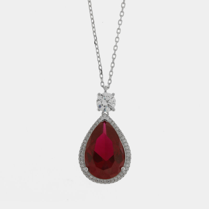 Collana in Argento 925 ovale con zircone rosso