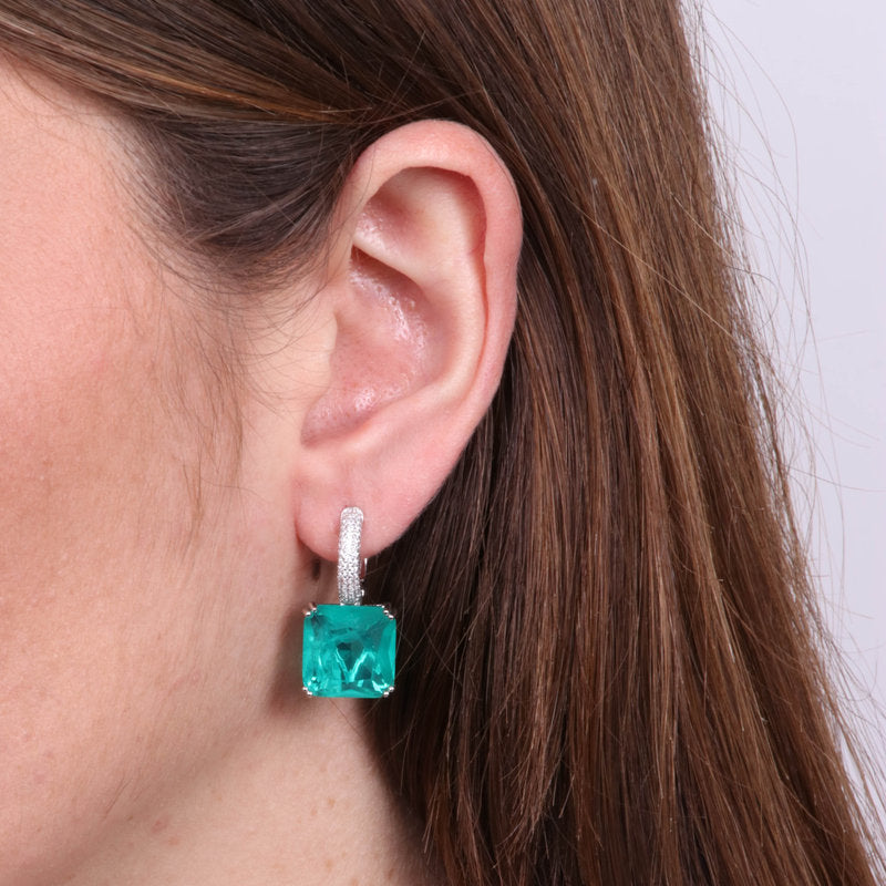 Orecchini in Argento 925 a cerchio con zircone verde quadrato