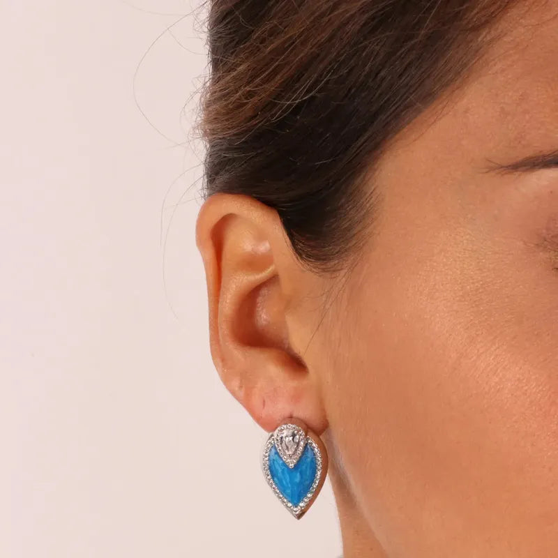 Orecchini in Argento 925 a forma di foglia impreziositi da zirconi bianchi e smalto blu