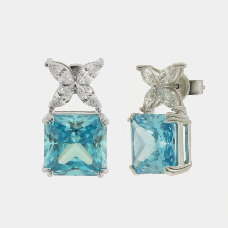 Orecchini in Argento 925 quadrato con zircone acqua