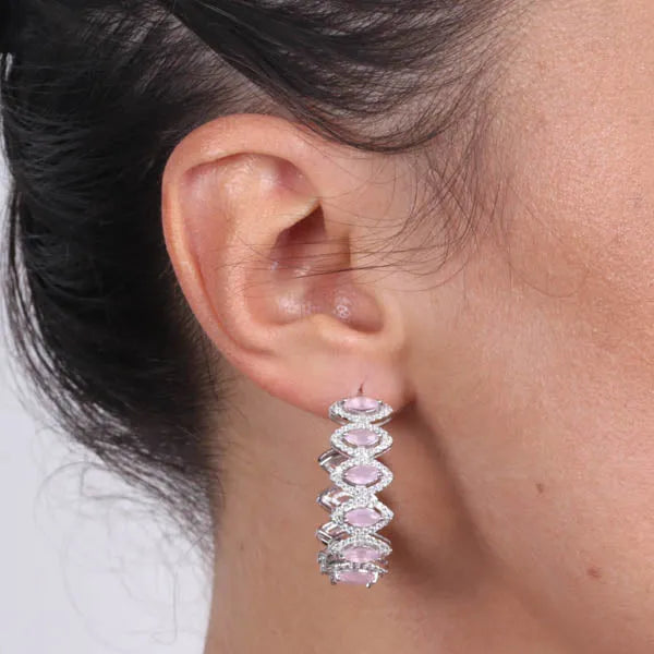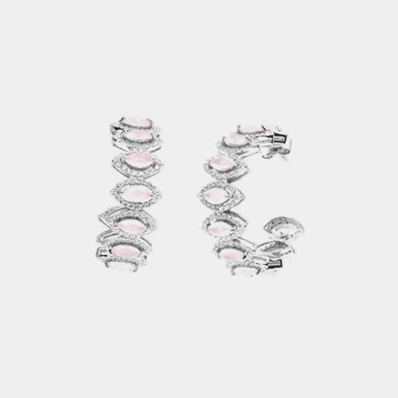 Orecchini in Argento 925 cerchi impreziositi da zirconi nelle sfumature rosa e zirconi bianchi