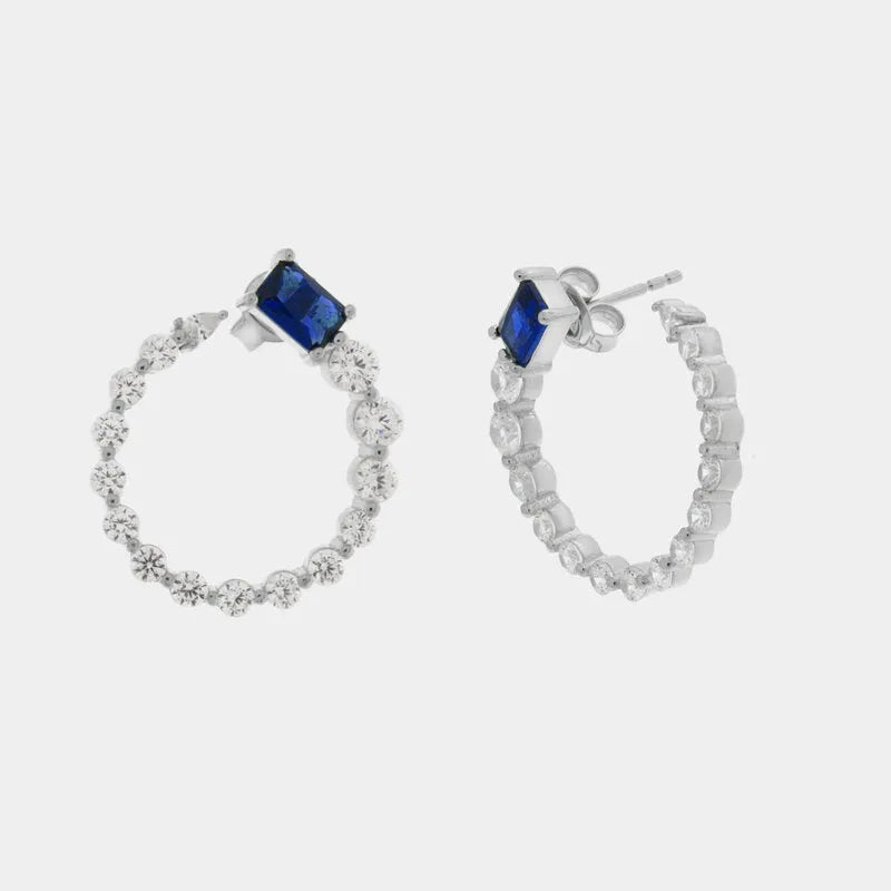 Orecchini in Argento 925 a cerchio con zirconi trasparenti e blu