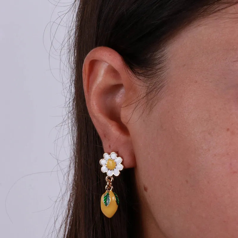 Orecchini in Metallo con limoni e fiore a lobo