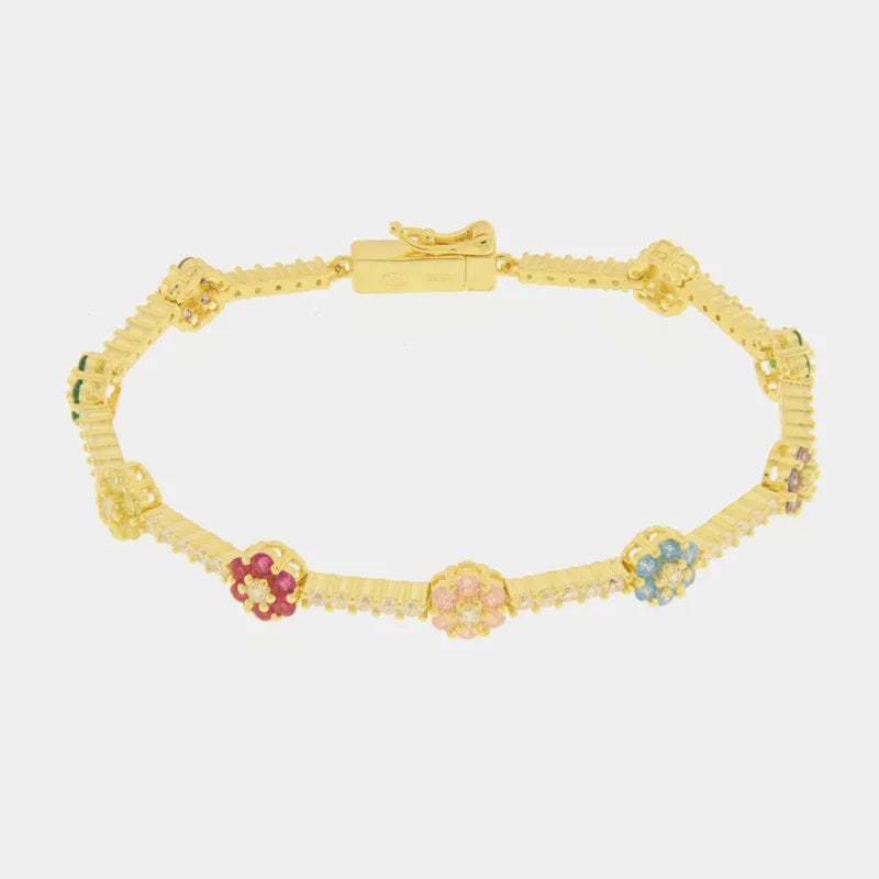 Bracciale in Argento 925 con fiori con cristalli multicolore e zirconi