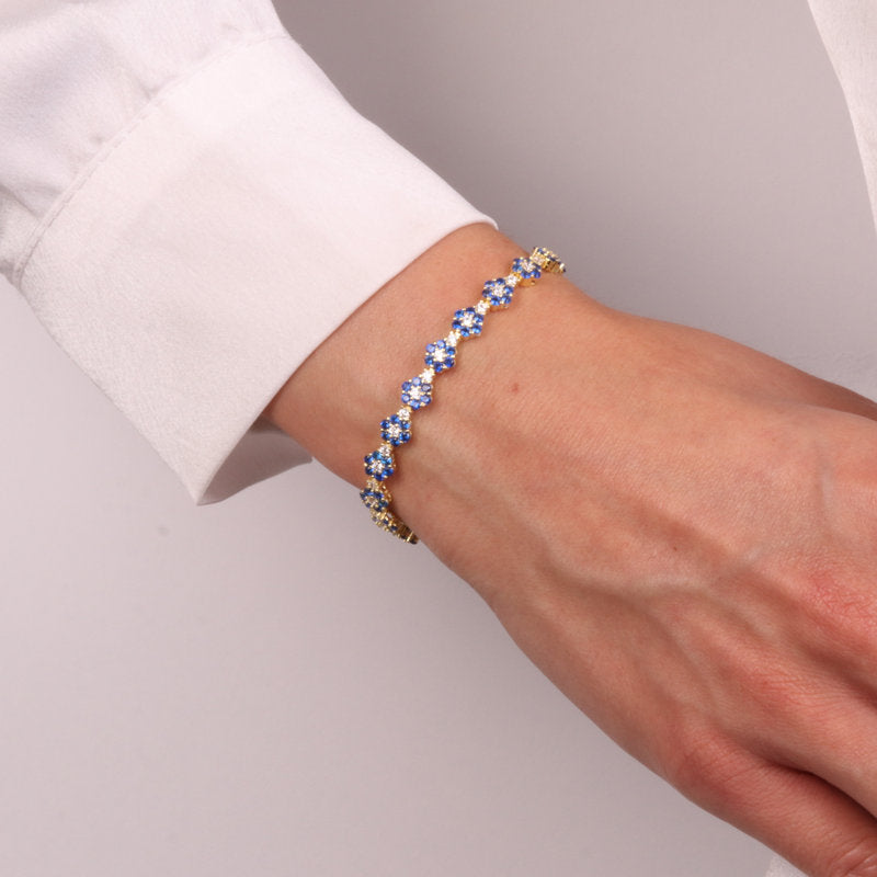 Bracciale in Argento 925 con zirconi blu e bianchi a forma di fiore