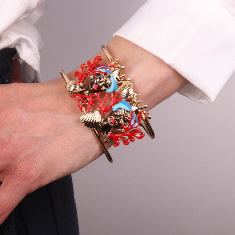 Bracciale in Metallo con teste di moro siciliane e coralli