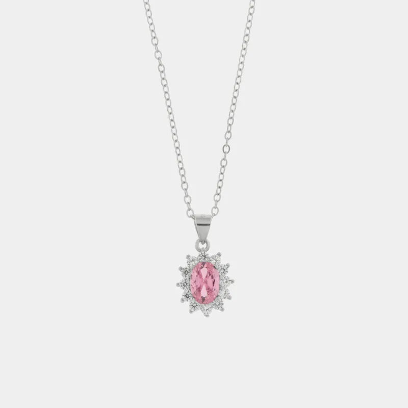 Collana in Argento 925 con zirconi bianchi e zircone centrale rosa