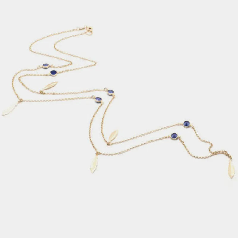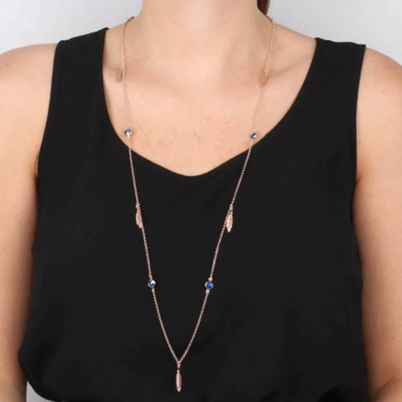 Collana in Argento 925 lunga con piume e cristalli pendenti