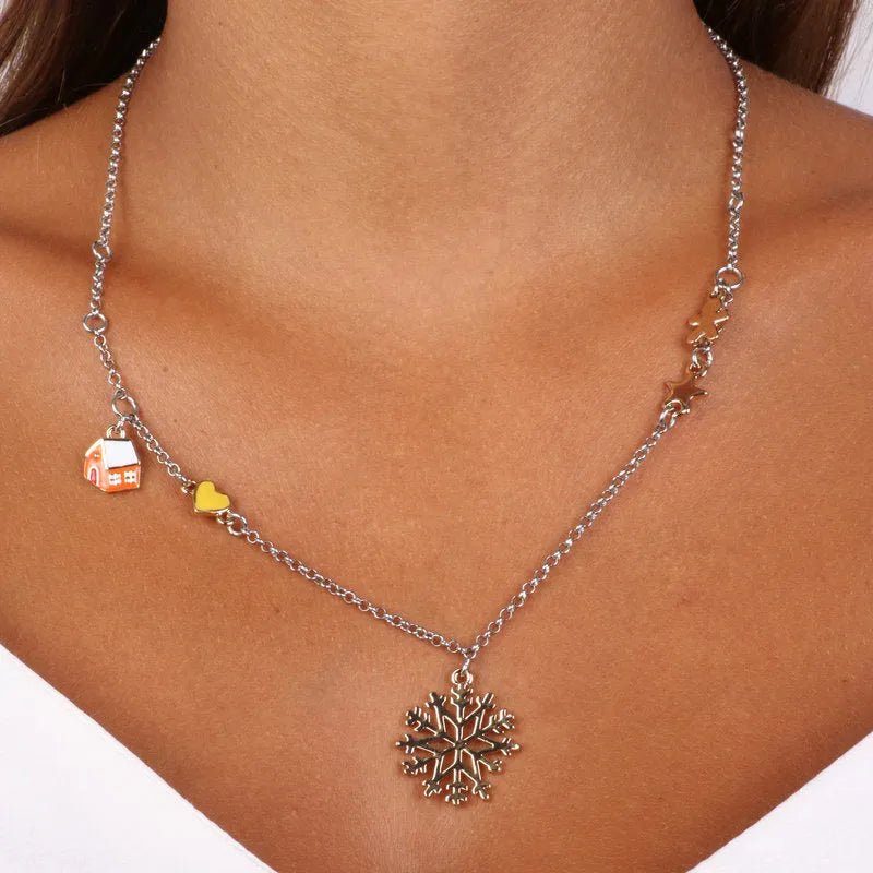 Collana in Metallo con pendente a forma di fiocco di neve e dettagli natalizi