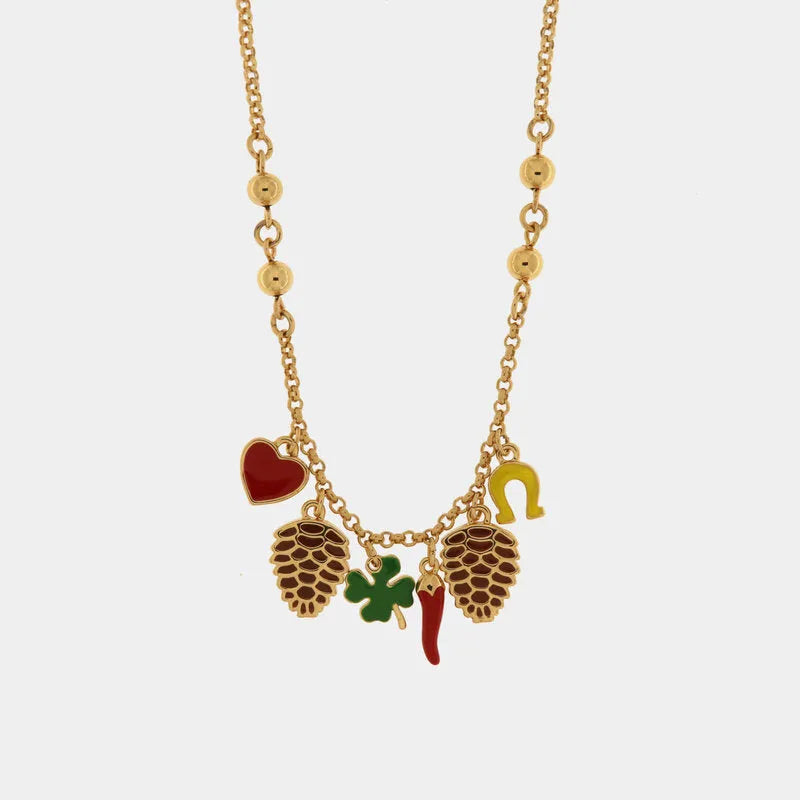 Collana in Metallo con pigne e simboli portafortuna pendenti