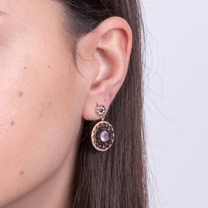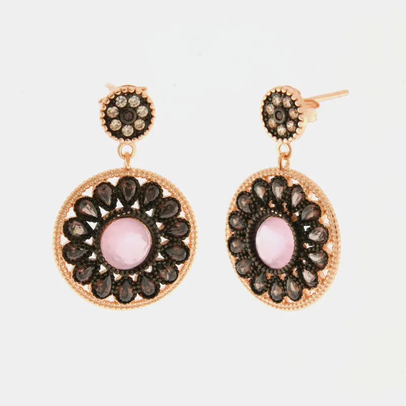 Orecchini in Argento 925 in stile antico con fiore e zirconi