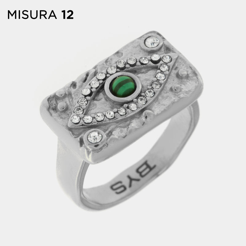 Anello in Acciaio con piastra impreziosito da occhio verde