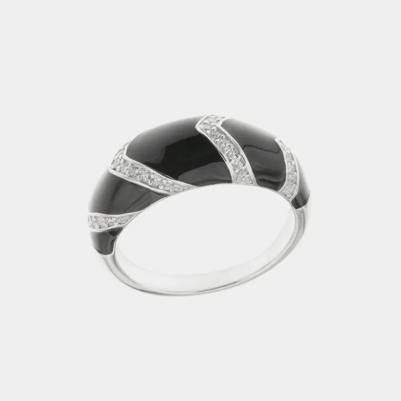Anello in Argento 925 smaltato nero con dettagli in zirconi bianchi