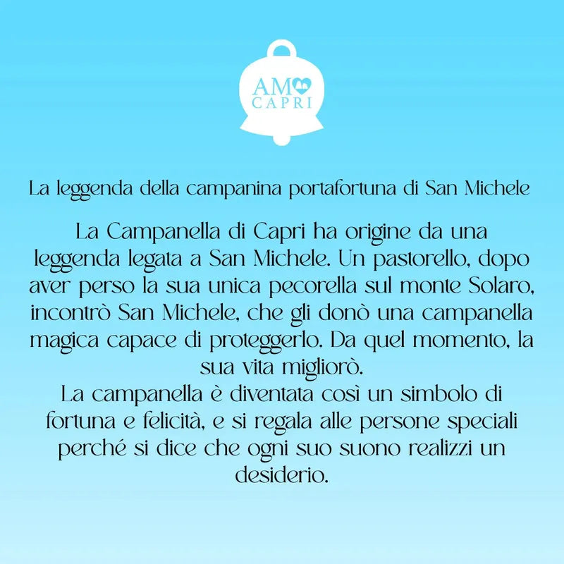 Molti la conoscono, ma pochi sanno che dietro questo prezioso portafortuna si cela una leggenda antica: sull’isola di Capri, un giovane pastorello, povero e orfano, perse al tramonto la sua unica compagna, una pecorella. Nella disperazione, udì il suono di una campanella che lo guidò verso una nuova speranza. Da allora, la Campanella è divenuta un simbolo di fortuna, magia e protezione da portare sempre con sé. Questo anello è creata con una campanella con smalto bianco e cristalli, per donare ancora più luce e raffinatezza a un gioiello intramontabile.