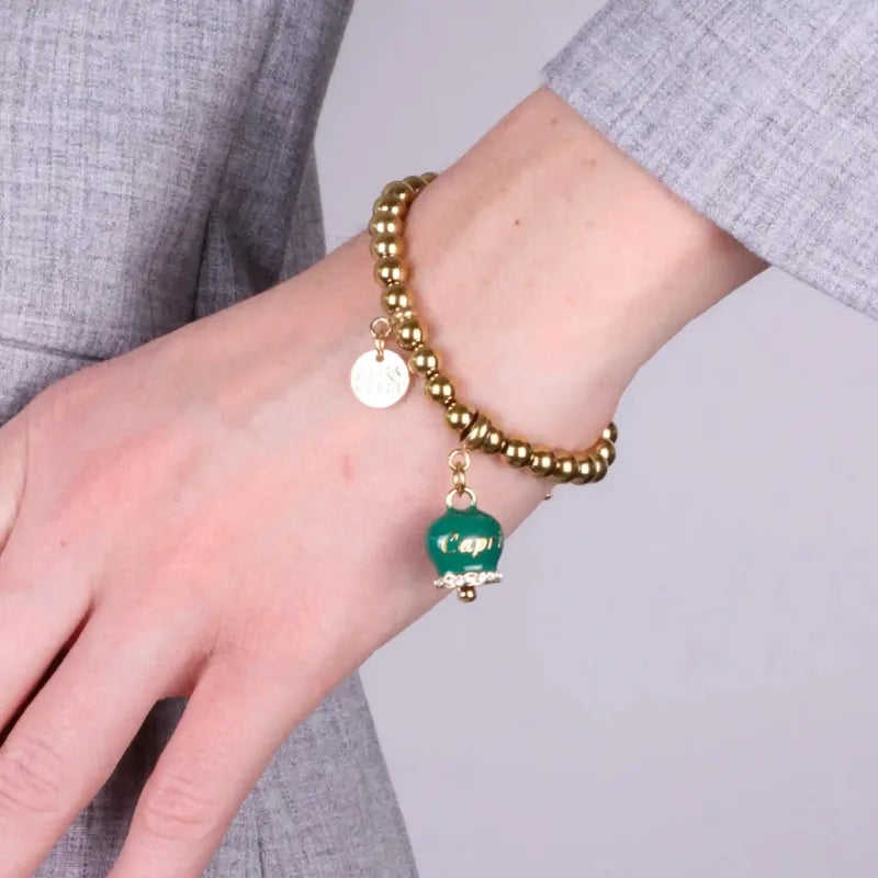Bracciale in Acciaio con campanella verde con scritta Capri