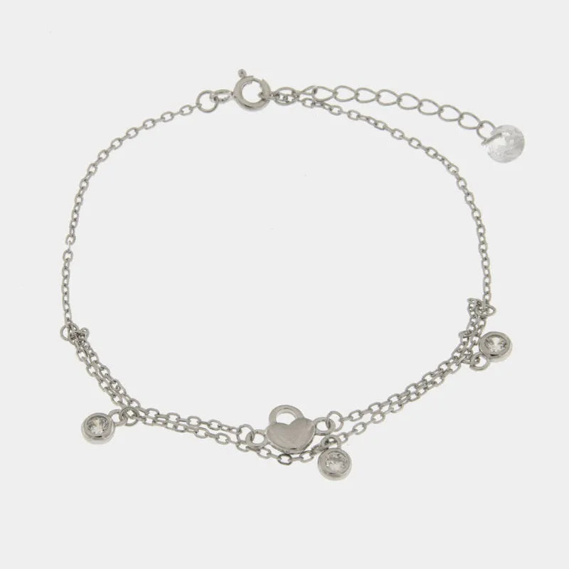 Bracciale in Argento 925 con cuorecino e zirconi bianchi pendenti