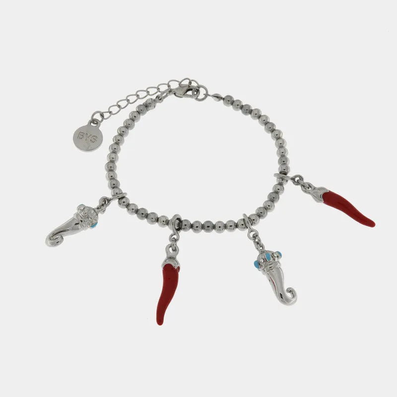 Bracciale in Metallo con cornetti portafortuna in smalto rosso