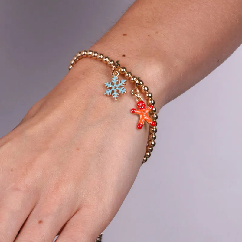 Bracciale in Metallo con fiocchi di neve e omino di pan di zenzero