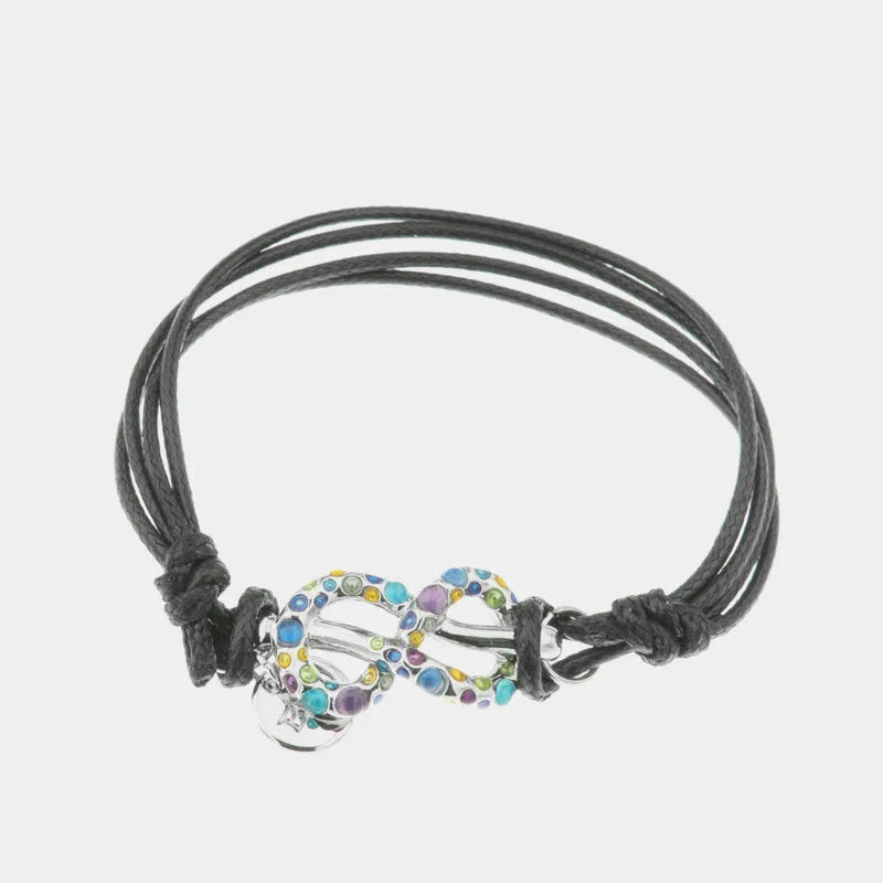 Bracciale in Metallo in caucciu, con simbolo infinito impreziosito da cristalli multicolore